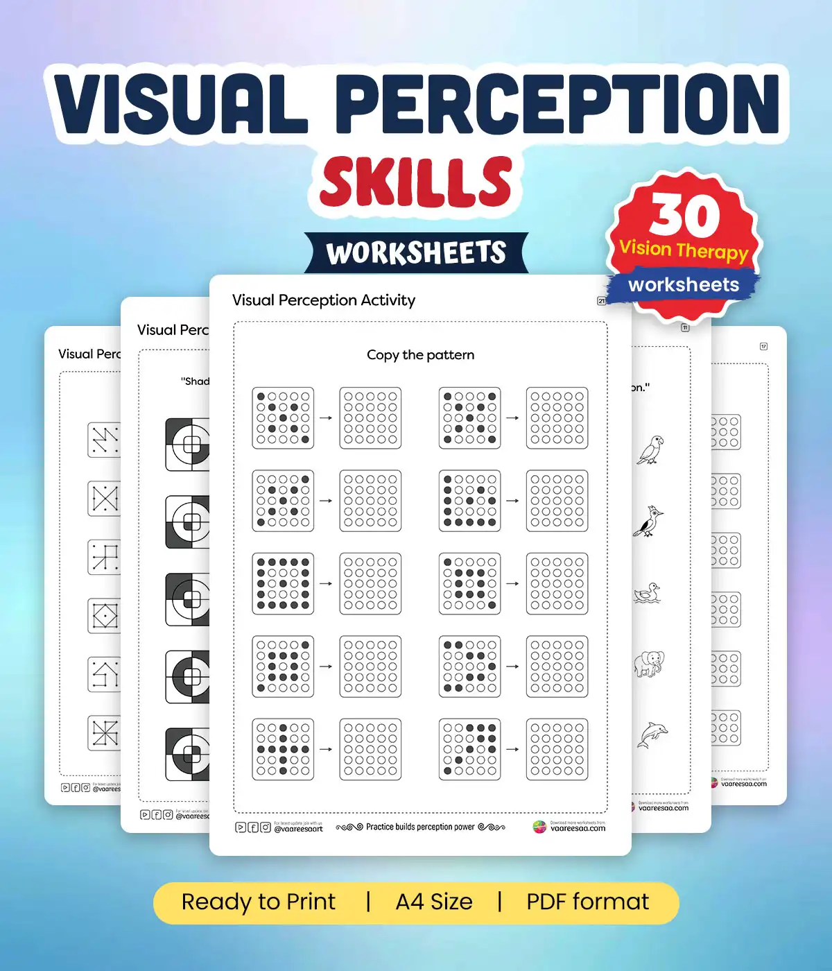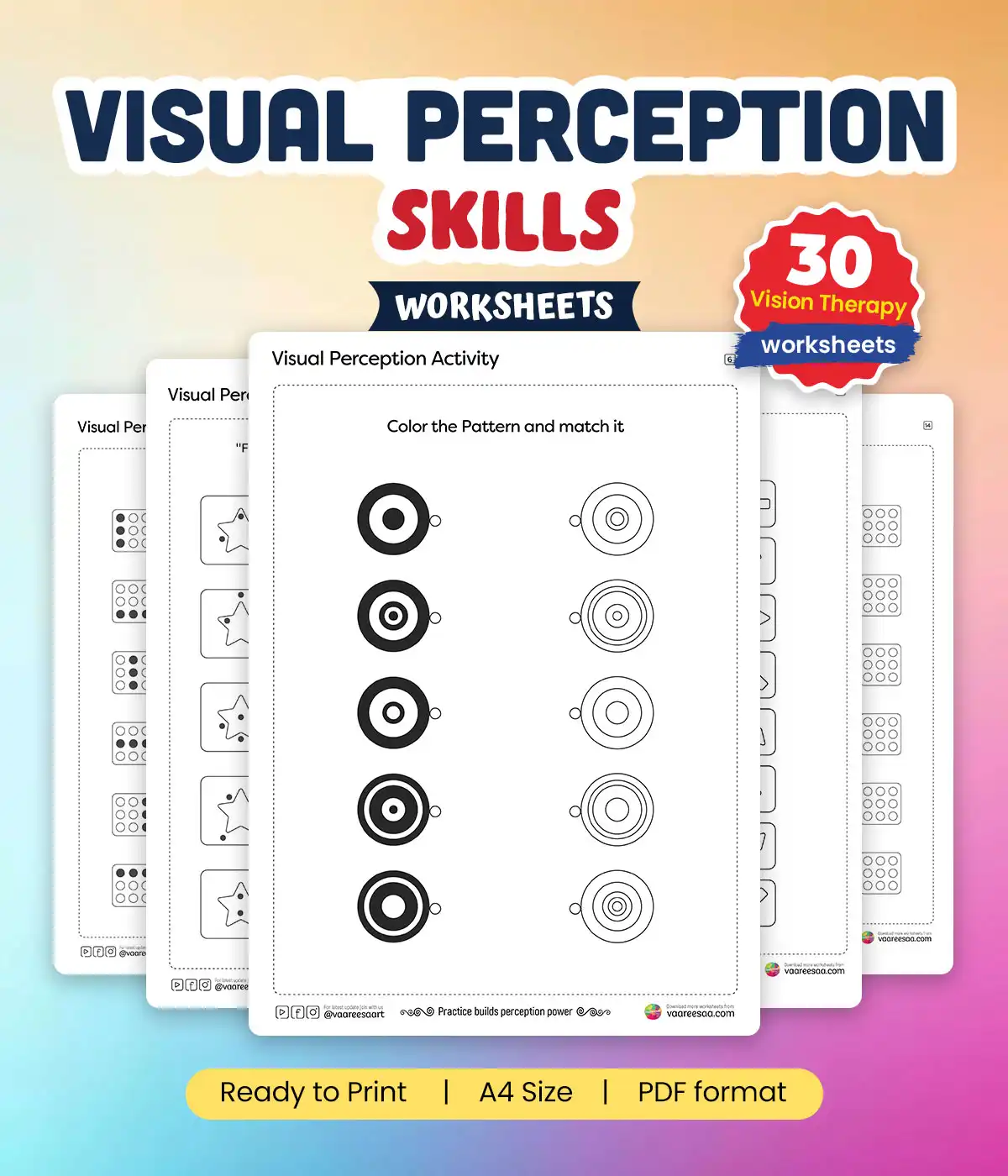 Our Visual Perception Skills Worksheets Series is designed to strengthen visual processing abilities in both kids and adults. For children, it supports learning by improving attention, memory, coordination, and reading readiness through fun, engaging activities. Adults benefit from enhanced focus, visual memory, and cognitive function-ideal for brain training or rehabilitation. The worksheets are age-appropriate, and easy to use at home, school, or in therapy. This series offers a practical, effective way to boost confidence and brain performance at any age.